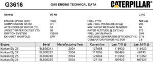I am pleased to announce the availability of 4 units of Cat G3616 Gensets for sale. The specifications, along with service and maintenance details, are attached for your reference.